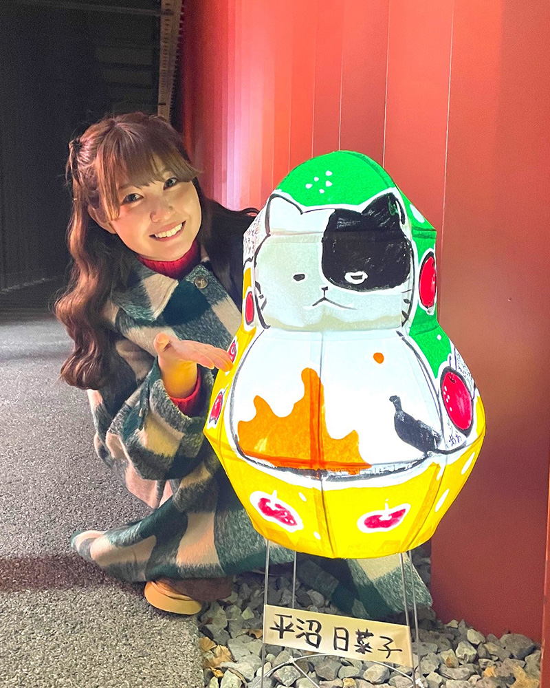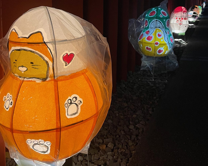 新町通り街灯に取り付けられている「雪見ぼんぼり」。色彩あざやかなねぶた技法による和紙の張り子が駅前から柳町通りまでを鮮やかに照らしていました!