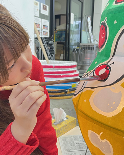 「雪だるま~る」は雪だるまの形をしたねぶた技法で作られた和紙のオブジェ。このオブジェにみんなが思い思いの内容を描き作品として展示されます!
